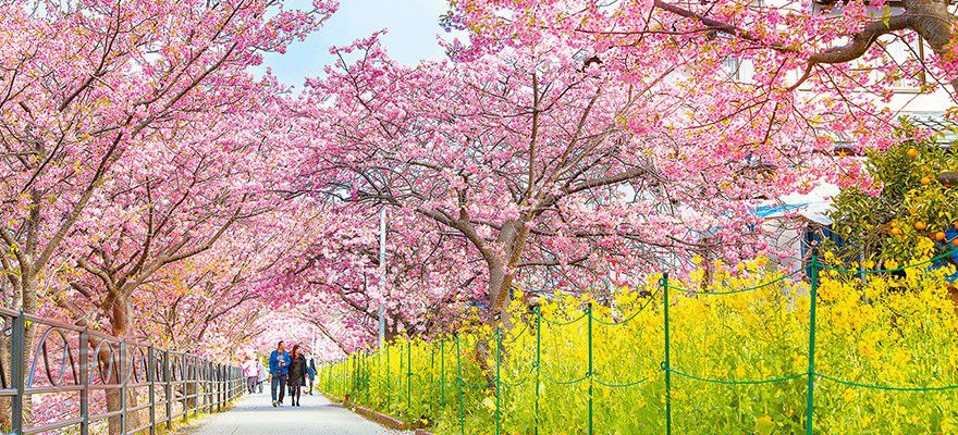 - Trải nghiệm ngắm hoa anh đào sớm Kawazu Sakura: Kawazu Sakura là một trong những giống hoa anh đào nổi tiếng nhất tại Nhật Bản vì đặc điểm nở sớm vượt trội, trước khi bước vào mùa hoa anh đào chính thức, báo hiệu mùa xuân đã về trong tiết trời còn se lạnh. Loài hoa này có nguồn gốc từ thị trấn Kawazu, tỉnh Shizuoka, và nổi bật với màu hồng đậm rực rỡ cùng những cánh hoa to và dày hơn so với giống hoa anh đào phổ biến như Somei Yoshino.