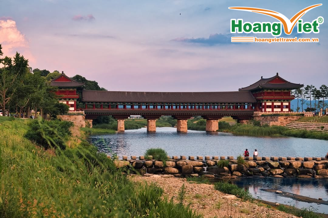 - Cầu Woljeonggyo, quý khách sẽ được chiêm ngưỡng cây cầu gỗ lớn nhất Hàn Quốc kết nối giữa cung điện Donggung và núi Namsan. Cầu được dựng lên từ thời Silla và từng bị chiến tranh phá hủy, nhưng sau đó lại được phục dựng lại năm 2018. Nếu là tín đồ của các bộ phim truyền hình Hàn Quốc hẳn quý khách đã từng thấy cây cầu này xuất hiện trong bộ phim “Quân vương bất diệt” do Lee Min Hoo và Kim Goo Eun đóng chính.
