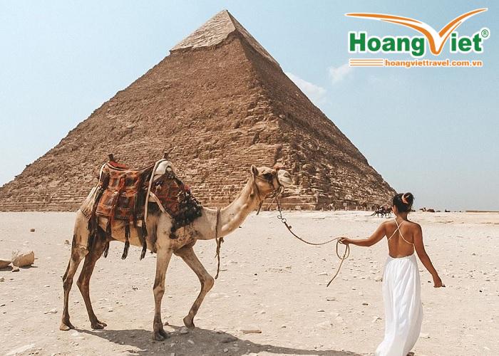 Điểm nhấn đặc biệt: Trải nghiệm cưỡi lạc đà tại chân Kim Tự Tháp – một khoảnh khắc “để đời” giữa khung cảnh kỳ vĩ của Giza. Những bước chân chậm rãi của lạc đà trên cát, những bức hình ngược sáng với nền kim tự tháp sừng sững phía sau… sẽ là kỷ niệm không thể nào quên.
