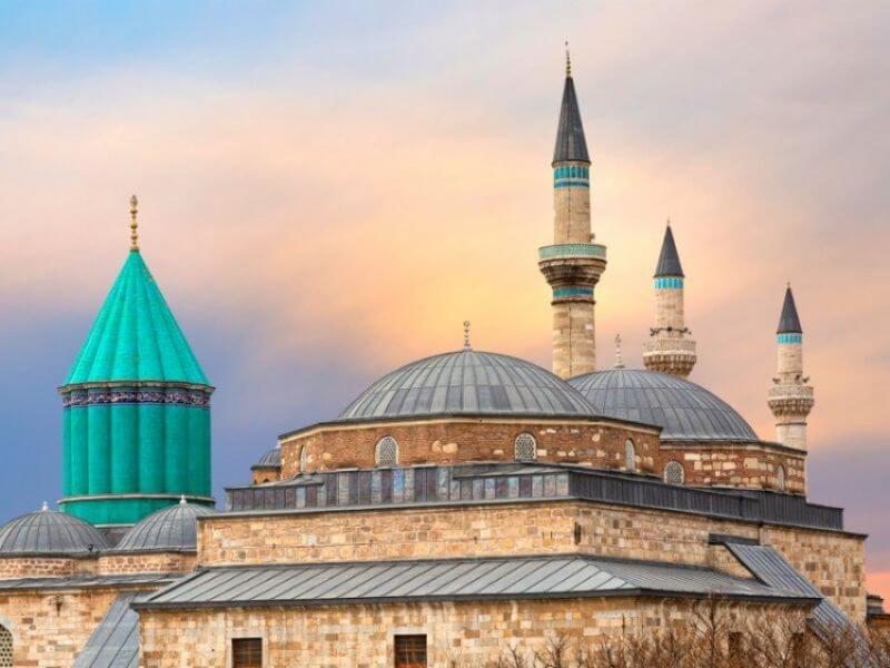 • Tu viện Mevlana – công trình kiến trúc Hồi giáo nổi bật với mái vòm màu xanh ngọc, nơi lưu giữ thi hài của Rumi và các hiện vật Hồi giáo cổ.