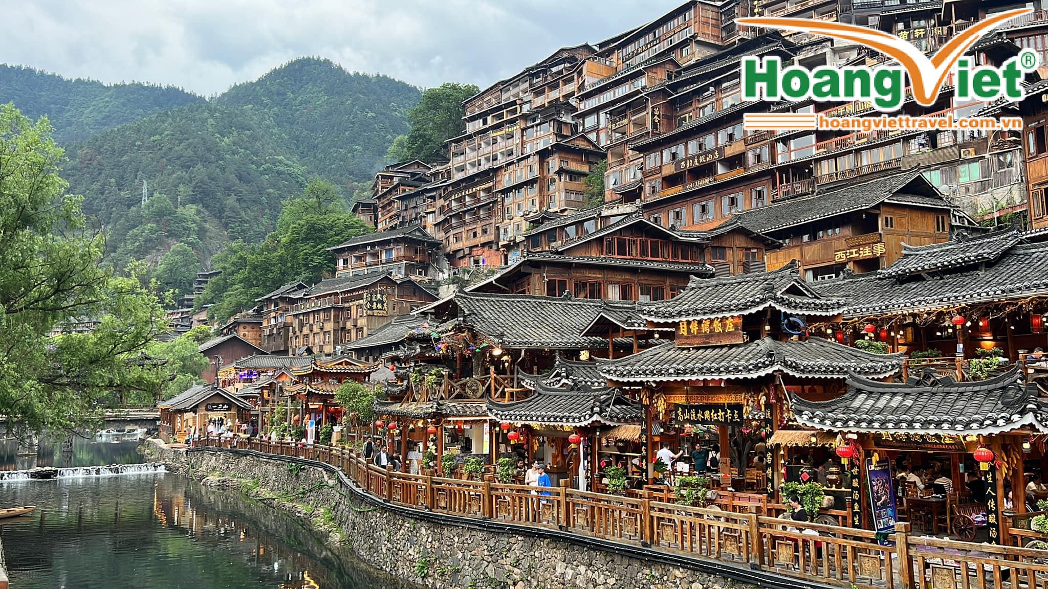 Chiều: Sau bữa trưa đoàn tham quan Làng Miêu Tích Thủy. Đoàn tham quan, chụp ảnh và cảm nhận văn hóa dân tộc Miêu. Với diện tích khoảng 1,4 km2, Làng Miêu Tích Thủy “ Tiểu Phượng Hoàng Cổ Trấn". Dòng sông Muyang gợn sóng xanh biếc, những tòa nhà kiểu Miêu đẹp độc đáo, được ca ngợi là một trong 100 thành phố du lịch thơ mộng nhất Trung Quốc.