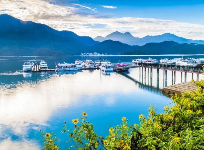 - Hồ Nhật Nguyệt (Sun Moon Lake) Là đầm thiên nhiên lớn nhất của Đài Loan, bao bọc tứ bề bởi thiên nhiên tươi mát, là điểm nghỉ dưỡng ưa thích của Tưởng Giới Thạch. Tại đây, đoàn sẽ lên thuyền, du ngoạn trên lòng hồ, và đắm chìm trong cảnh sắc hồ (đầm) Nhật Nguyệt.