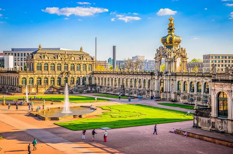 - Cung điện Zwinger - Cung điện này được xây dựng theo phong cách đầu trường La Mã, các chi tiết ở đây được kết hợp hài hòa giữa điêu khắc và hội họa, mang đến vẻ đẹp độc đáo. Du khách đặt chân tới cung điện Zwinger, bên việc khám phá lối kiến trúc nơi đây, còn được mát nhãn với các bộ sưu tập cổ, đặc biệt là gốm sứ nghệ thuật (chụp hình bên ngoài).