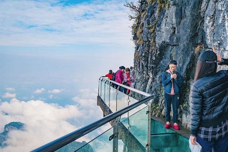 - Quý khách có thể tham quan Cầu kính đại hiệp cốc, trải nghiệm VR và thang máy máy (chi phí tự túc) - được gọi là Cầu kính Trương Gia Giới hay cầu kính Vân Thiên Độ) thuộc Vườn quốc gia Trương Gia Giới dài 430 mét và rộng 6 mét, khung sắt của nó được cùng với 120 tấm kính cường lực. Với tổng độ dày 5 cm, được làm bằng 3 lớp kính cường lực, không sử dụng thép hay bê tông nhưng cây cầu vẫn đảm bảo an toàn cho du khách bởi nó được các chuyên gia thiết kế chịu được tải trọng hơn 800 người sử dụng cùng một lúc.