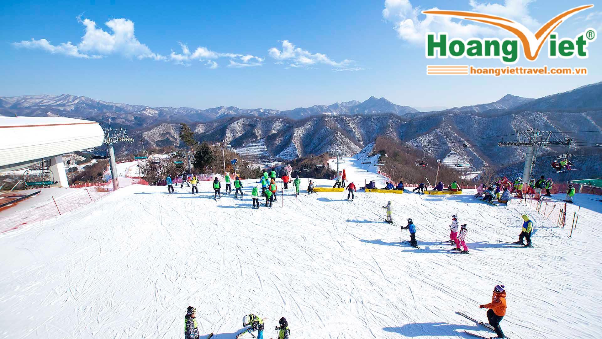 - Khu trượt tuyết ELYSIAN GANGCHON – hệ thống khu giải trí phức hợp nằm trong khung cảnh hoành tráng của vùng núi TỈNH GANGWONDO. Quý khách có thể tận hưởng cảm giác thú vị trước thiên nhiên bao phủ tuyết trắng, lưu lại các bức ảnh kỷ niệm mùa tuyết rơi và trải nghiệm môn thể thao trượt tuyết trên đường trượt có độ cao hơn 50m. Theo sự hướng dẫn của Hướng dẫn viên, Quý khách sẽ làm quen với các bài học trượt tuyết bằng máng trượt hoặc có thể sử dụng gậy trượt. (chi phí thuê quần áo, dụng cụ trượt tuyết tự túc).