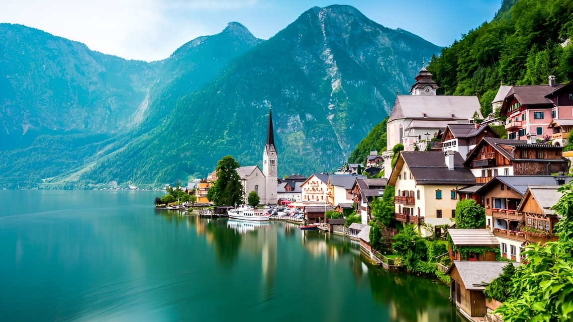 • Hallstatt – thị trấn bên hồ đẹp nhất thế giới: Dựa lưng vào núi Dachstein, mặt ngoài hướng ra hồ Hallstättersee, Hallstatt với vẻ đẹp thơ mộng được mệnh danh là “hòn ngọc nước Áo” hay “xứ sở thần tiên”.
