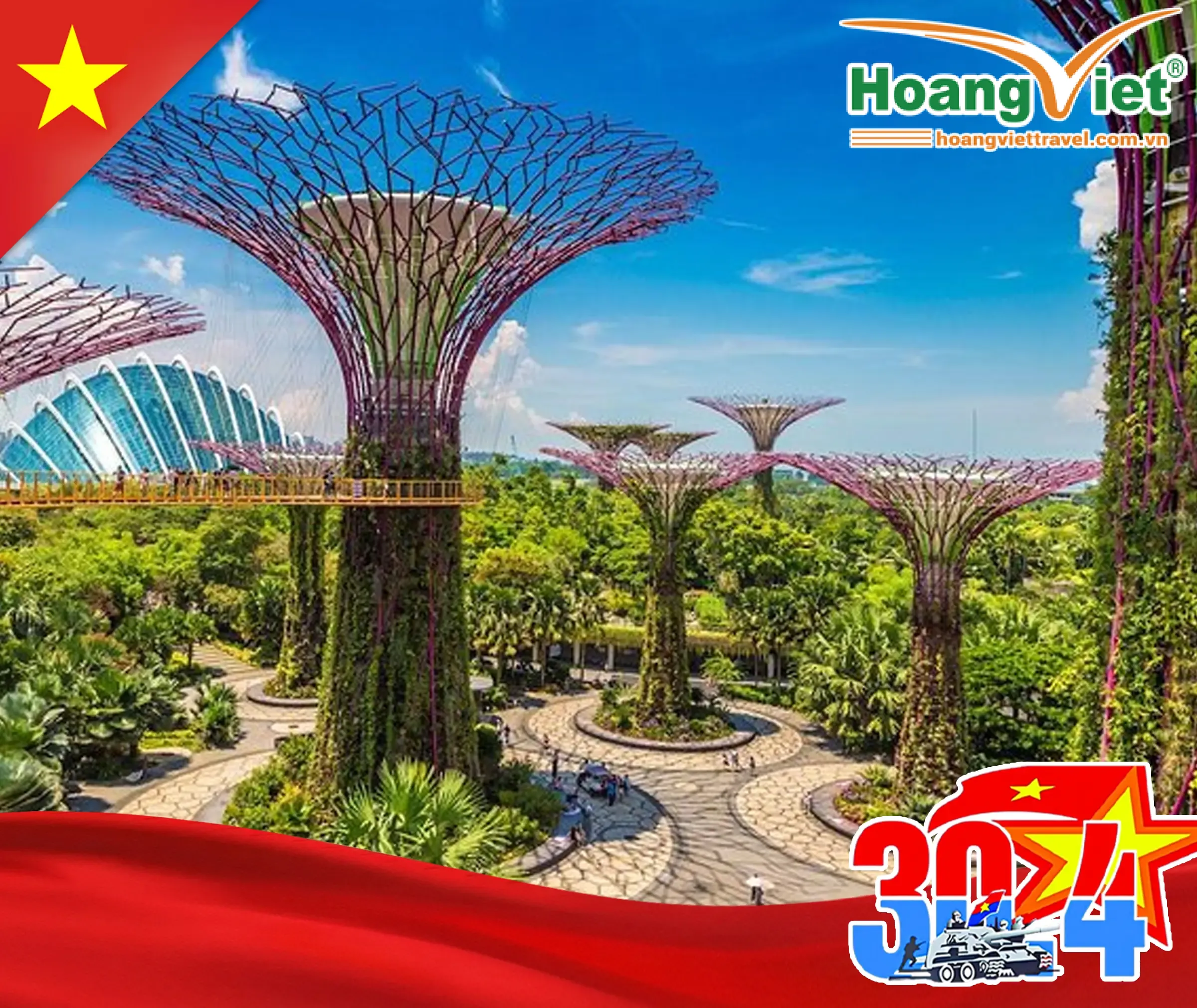 - 13h55: Tới sân bay Changi (Singapore), đoàn làm thủ tục nhập cảnh Singapore. Xe đưa đoàn đi tham quan: Khu vườn sinh thái đặc biệt mang tên Bay South Garden By the Bay - với hệ thống “siêu cây” năng lượng mặt trời, dự án công viên sinh thái lớn nhất Singapore nhằm nâng cao chất lượng cuộc sống, giữ được màu xanh cho đô thị sầm uất. Tham quan và mua sắm tại Xưởng chế tác kim cương, vàng bạc và đá quý, Cửa hàng bán dầu gió + Collagen dưỡng da – các sản phẩm truyền thống và nổi tiếng độc đáo của Singapore.
