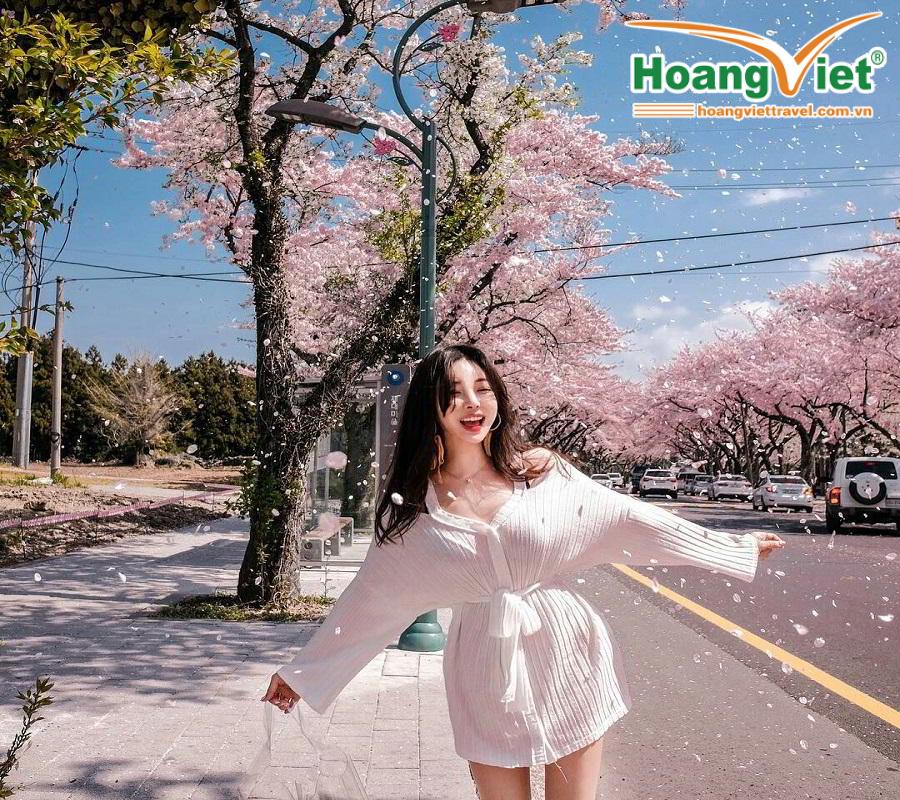• Thưởng ngoạn và chụp ảnh trên con đường hoa anh đào nổi tiếng nhất Seoul, Công viên Yeouido đường Yunjungno phía sau tòa nhà Quốc Hội-điểm ngắm hoa anh đòa nổi tiếng nhất ở Seoul, được viền bằng 1.400 cây hoa anh đào nở đầy những bông hoa màu hồng nhạt.