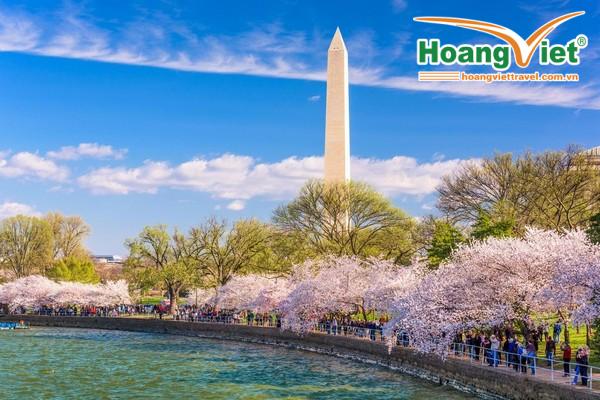 Đến Washington D.C, Xe đưa đoàn đi ngắm sắc Hoa Anh Đào đẹp lộng lẫy. Cứ vào cuối tháng 3 hàng năm, mùa hoa anh đào ở Mỹ đã bắt đầu nở rộ. Vào thời điểm này, khi du lịch đến Washington D.C, bạn sẽ được tham gia lễ hội hoa anh đào vô cùng đặc sắc. Lễ hội này được tổ chức thu hút hàng triệu du khách trên toàn thế giới. Trong mùa lễ hội, người dân thủ đô Washington lại đổ về hai bên hồ Tidal Basin để ngắm hoa nở và chụp ảnh.