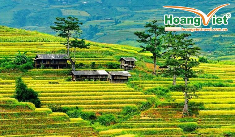 06h40 – 07h00: Đoàn trả phòng, ăn sáng, Tiếp tục chuyến hành trình với một số địa điểm đẹp trên tuyến đường mà Quý khách không nên bỏ qua, Từng thửa ruộng bậc thang chập chùng, uốn lượn như những cơn sóng vàng óng ả trong nắng vàng hớp hồn những ai có mặt nơi đây.