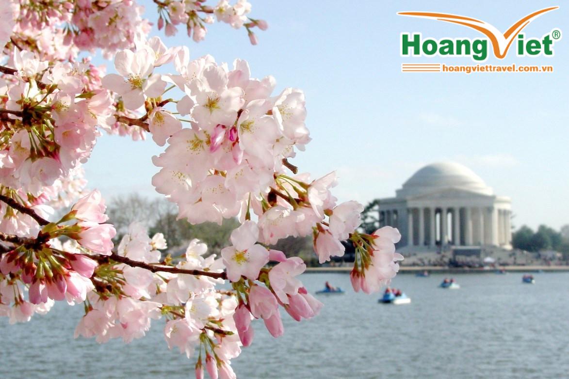 Đến Washington D.C, Xe đưa đoàn đi ngắm sắc Hoa Anh Đào đẹp lộng lẫy. Cứ vào cuối tháng 3 hàng năm, mùa hoa anh đào ở Mỹ đã bắt đầu nở rộ. Vào thời điểm này, khi du lịch đến Washington D.C, bạn sẽ được tham gia lễ hội hoa anh đào vô cùng đặc sắc. Lễ hội này được tổ chức thu hút hàng triệu du khách trên toàn thế giới. Trong mùa lễ hội, người dân thủ đô Washington lại đổ về hai bên hồ Tidal Basin để ngắm hoa nở và chụp ảnh.