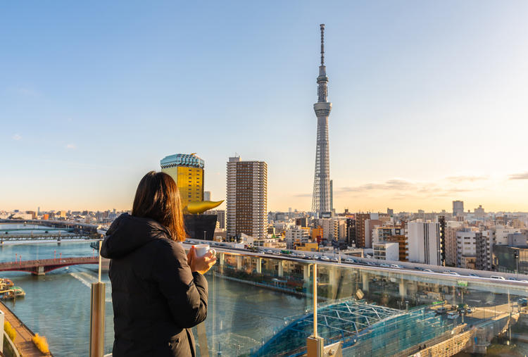 - Chụp ảnh Tháp Tokyo Skytree – tháp truyền hình cao nhất thế giới từ dòng sông Sumida.