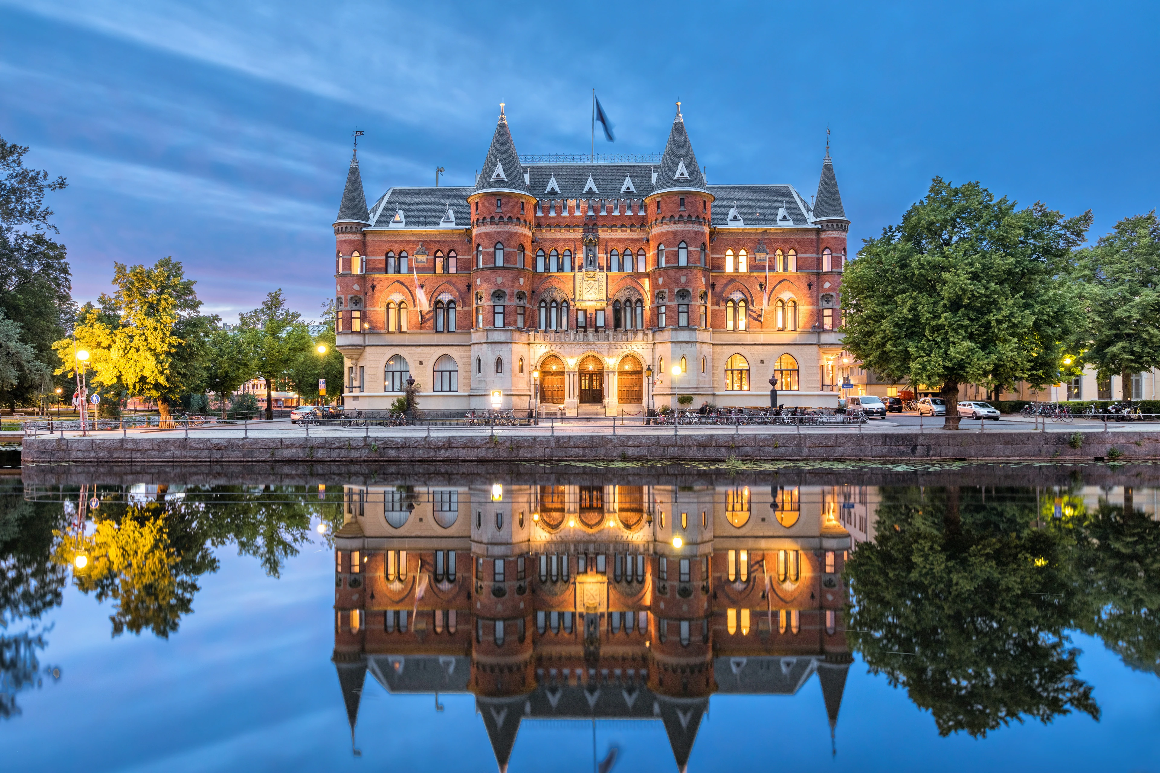 • Chụp hình bên Lâu đài Orebro - hướng về phía sông Svartan yên bình. Con đường phủ đá granite cổ kính dẫn vào tòa lâu đài tráng lệ và nguy nga. Mái vòm mềm mại uốn lượn quanh tòa thành kiên cố, rêu phong phủ kín bức tường đá cẩm thạch 500 năm sừng sững, để lại một tòa cung điện trầm mặc, uy nghi giữa hoàng hôn tím thẫm. Những ánh điện vàng len lỏi, soi bóng lên mặt sông lấp loáng và xa xăm…