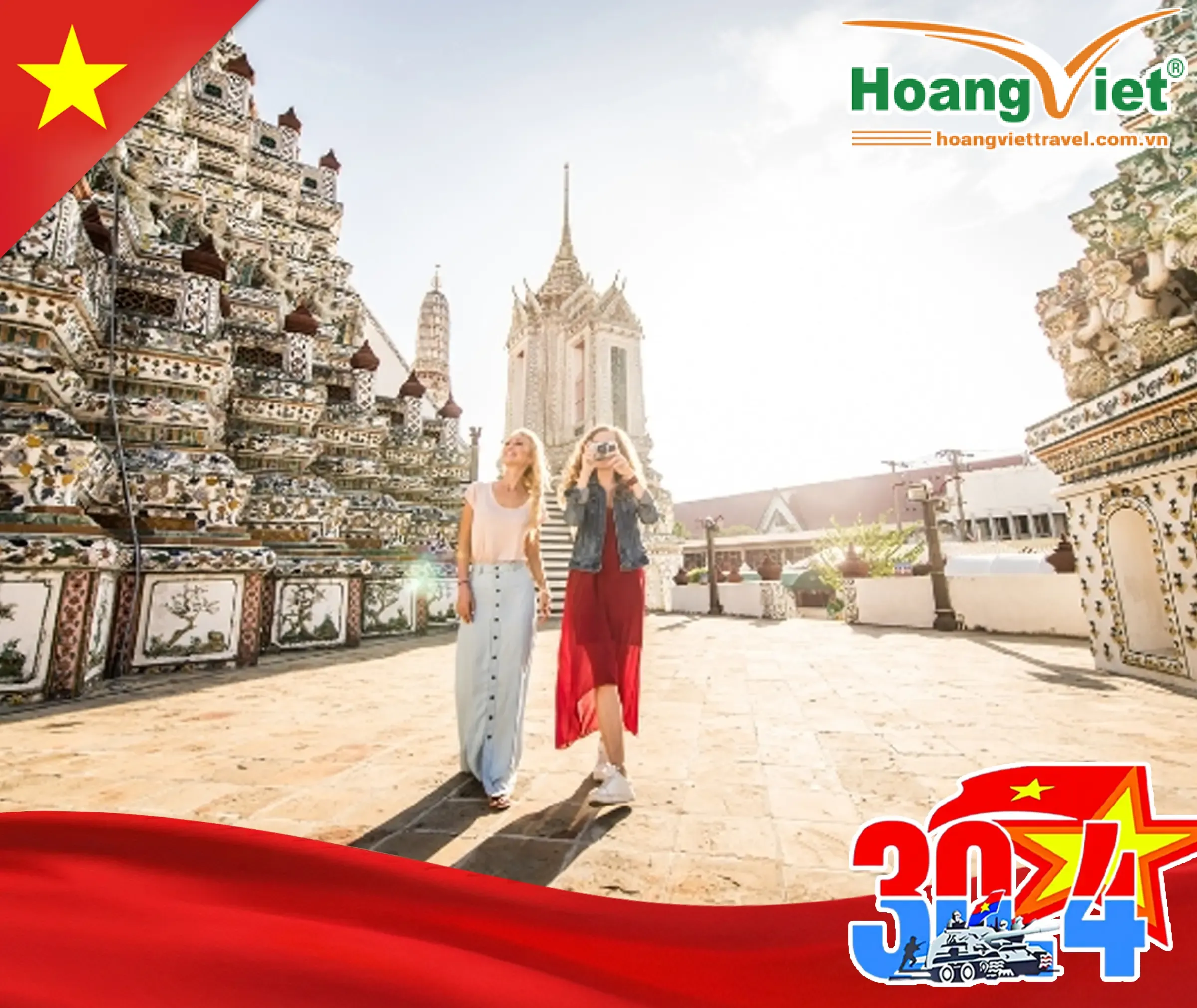 12h30: Xe và hướng dẫn viên công ty du lịch đón đoàn tại điểm hẹn, đưa đoàn ra sân bay Nội Bài đáp chuyến bay VN619 (15h55 - 18h05) đi Bangkok.
