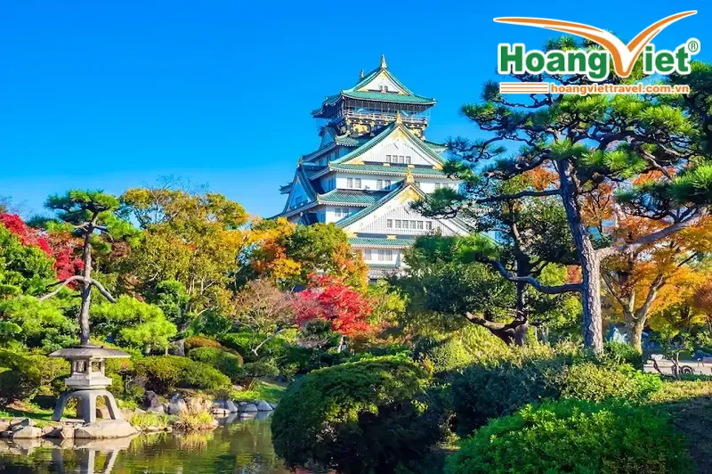 - Lâu Đài Osaka: Là biểu tượng của thành phố Osaka, đây cũng là một trong những lâu đài du khách không thể không ghé qua một lần khi tới Nhật Bản. Với kiến trúc tráng lệ và khu vườn rộng lớn, lâu đài không chỉ là một di tích lịch sử mà còn là một địa điểm check-in tuyệt đẹp. (Quý khách chụp hình phía bên ngoài)