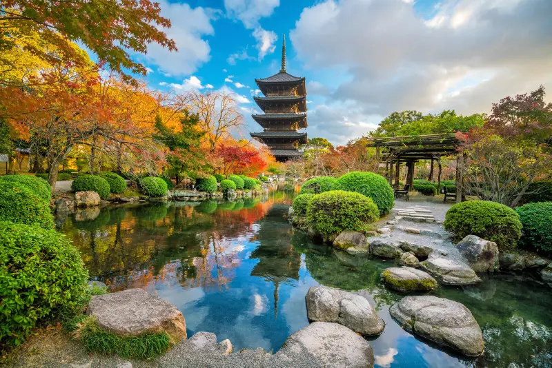 • Đoàn trải nghiệm mặc trang phục truyền thống Nhật Bản tại chùa Toji. Chùa Toji là biểu tượng vượt thời gian của cố đô Kyoto, trở thành tuyệt tác kiến trúc bằng gỗ cao nhất Nhật Bản. Trải qua 1200 năm lịch sử thăng trầm, chùa Toji vẫn giữ được vẻ đẹp cổ kính và linh thiêng, thu hút du khách khắp nơi trên thế giới.