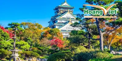 - Tham quan, chụp ảnh bên ngoài thành Osaka Castle (hay còn gọi là lâu đài Hạc Trắng). Đến đây bên cạnh việc thưởng ngoạn quanh lâu đài du khách còn có thể nghe giới thiệu và ngắm nhìn những trang phục võ sĩ còn lưu lại từ thời Edo.