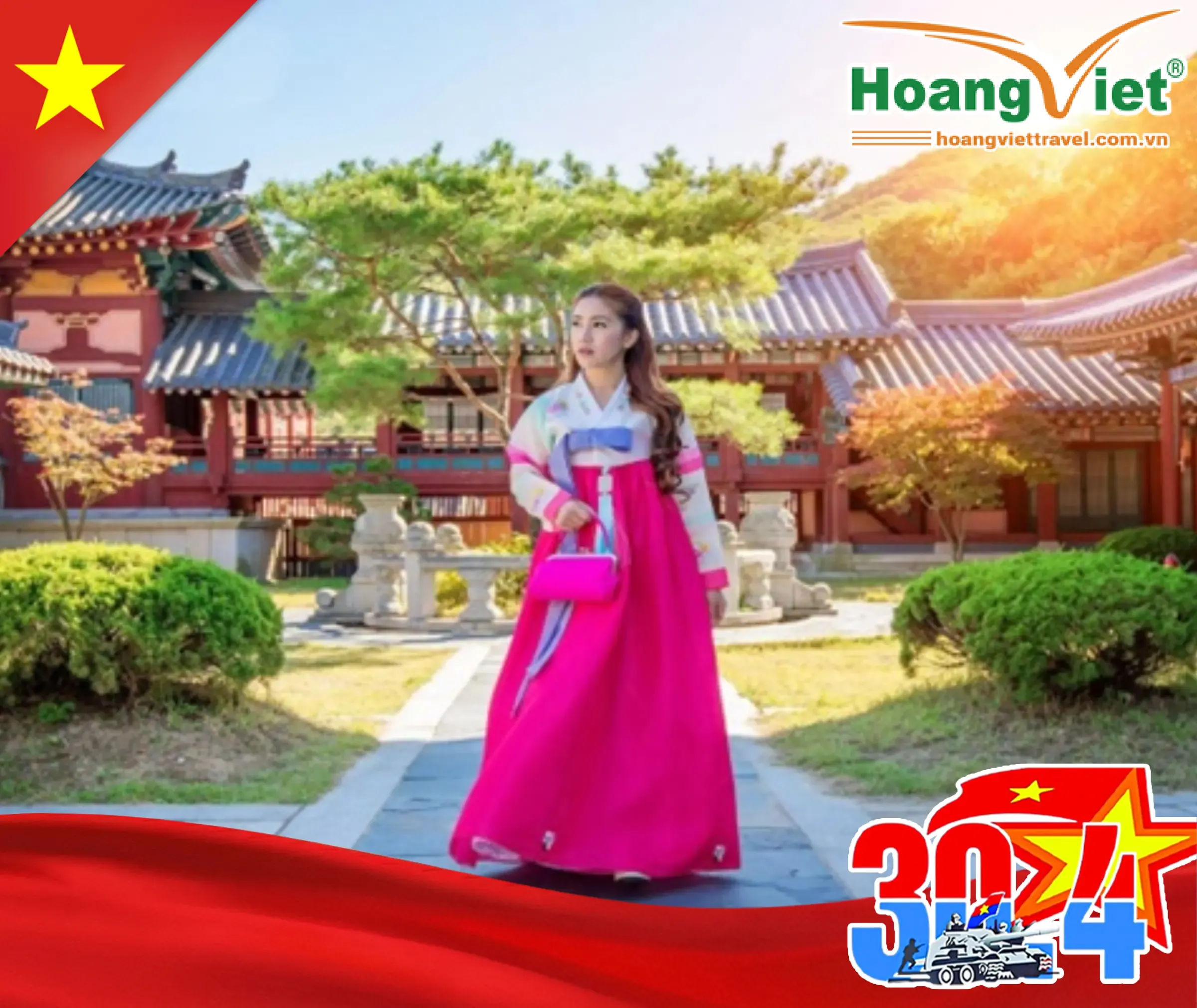 - Vé máy bay khứ hồi theo đoàn của hàng không 4* VietNam Airlines (VN): Hà Nội - Seoul - Hà Nội, bao gồm 1 kiện 23kg kí gửi + 10kg xách tay.