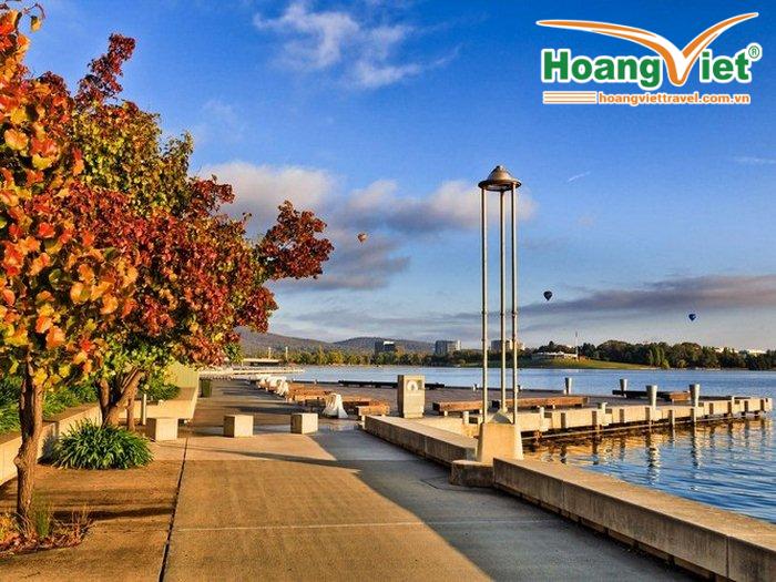 - Xe chạy dọc theo hồ Burley Griffin tuyệt đẹp và thăm quan con đường nơi đặt trụ sở Đại sứ quán các nước.