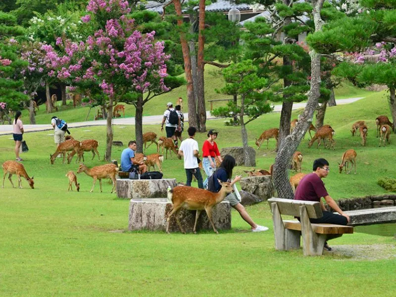 •  Công viên Nara là công viên đồ sộ dưới chân Núi Wakakusa với đầy hươu nai tinh nghịch và thân thiện. Khung cảnh thiên nhiên gồm những ngôi chùa nằm trong khu rừng nguyên sơ và hồ nước đầy rùa và cá chép.