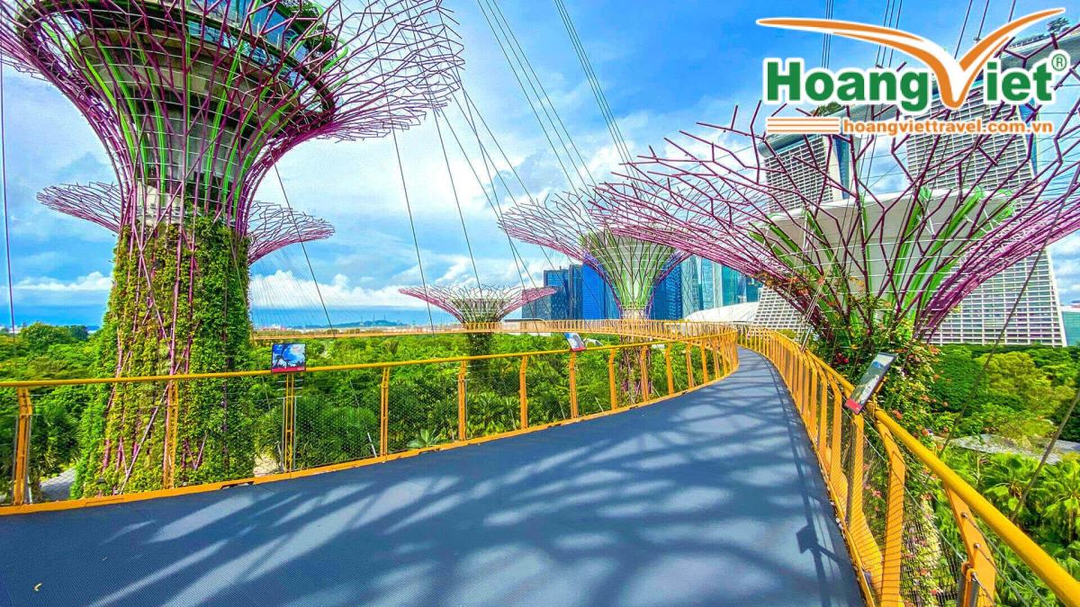 - Sau khi ăn sáng, đoàn tham quan Khu vườn sinh thái đặc biệt mang tên Bay South Gardensby the Bay – với hệ thống “siêu cây” năng lượng mặt trời, dự án công viên sinh thái lớn nhất Singapore nhằm nâng cao chất lượng cuộc sống, giữ được màu xanh cho đô thị sầm uất. Toàn bộ dự án có tổng diện tích 101 ha, được chia làm 3 khu riêng biệt là: Bay South, Bay East và Bay Central (chỉ tham quan khu Bay South, không bao gồm vé tham quan các khu vườn trong nhà kính).