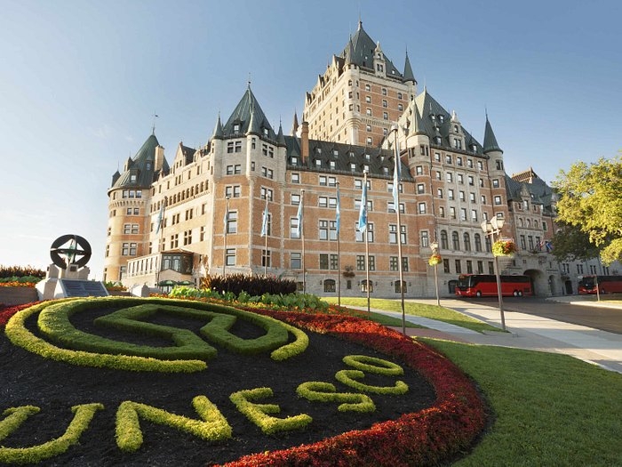 - Lâu đài Fairmont Le Château Frontenac (Chụp hình bên ngoài) - là trung tâm của thành phố Quebec. Đồng thời đây cũng là một biểu tượng của đất nước Canada. Lâu đài này còn được người dân gọi với một cái tên đơn giản là lâu đài Frontenac.