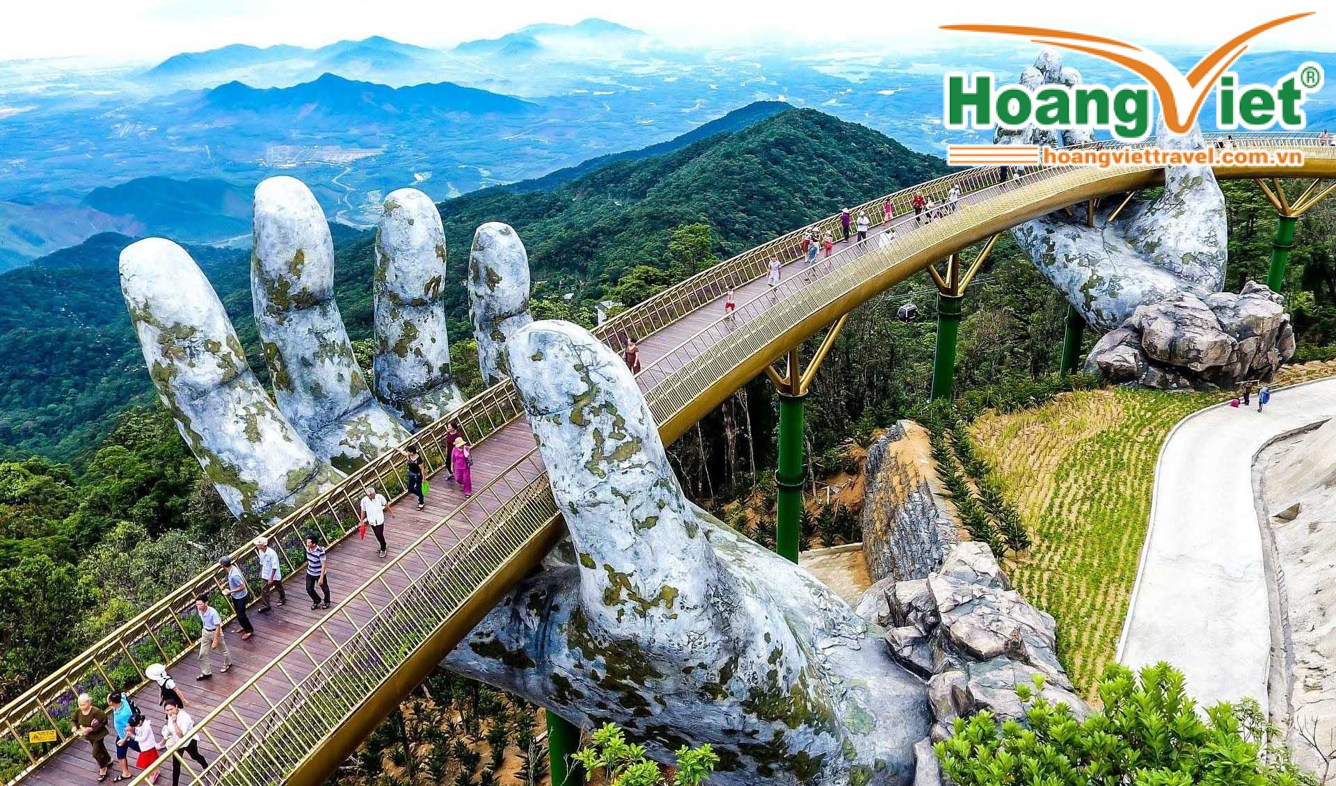 08h00: Xe đón đoàn khởi hành đi Bà Nà - Núi Chúa nơi có những khoảnh khoắc giao mùa bất ngờ Xuân - Hạ - Thu - Đông trong một ngày. Qúy khách sẽ tận hưởng cảm giác bồng bềnh khi ngồi trên Cabin lơ lửng giữa chừng mây. Viếng chùa Linh Ứng với tượng Phật Thích Ca cao 27m, viếng đền thờ Bà Chúa Mẫu Thượng Ngàn. Checkin tại Cầu vàng – cây cầu được thiết kế vô cùng ấn tượng, vẽ nên một cung đường đầy mê hoặc giữa lưng chừng trời, dài gần 150 mét.